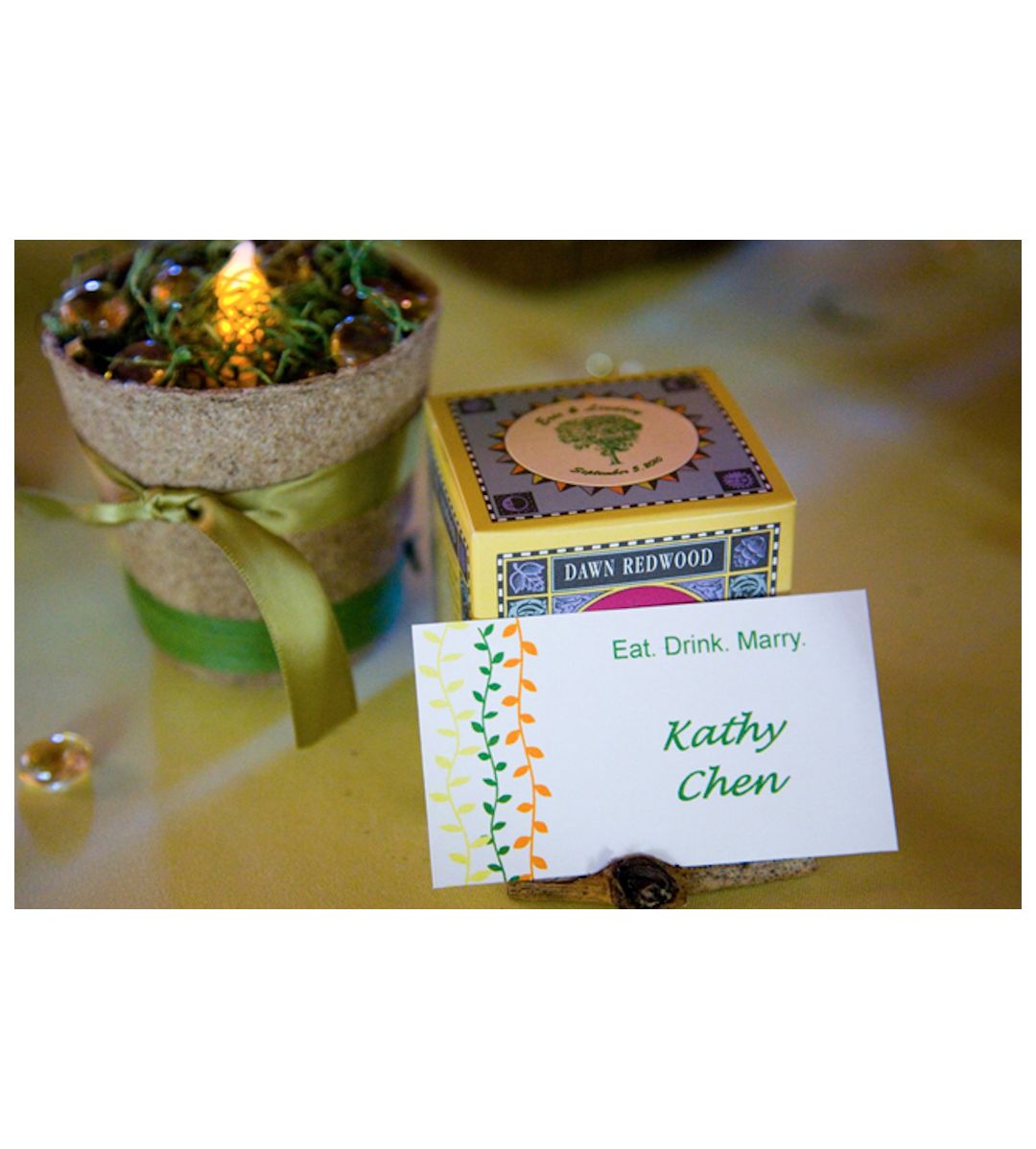 With our beautiful packaging and 100% seed guarantee, we provide one less thing to worry about. The boxes are bright and colorful and with your added custom wedding seal, there is no need for additional wrapping or presentation to incorporate them into your wedding theme. With our 100% seed guarantee, we eliminate the stress about providing a gift to guests that isn’t useful. If for any reason a guest cannot get their seed to sprout, they just need to send us a note and we will send them a new package of seeds to try again and again until they get their tree to sprout.