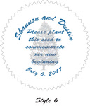 Custom Seals: Wedding Favor seals are available in two sizes: 1.5” and 2” circle. Select from one of our standard seal styles (shown to the left) or submit your own image/design. If you are using a custom image, we can help lay it out with text and email a proof to you before printing. Standard style seals will not be sent for proofing unless requested.